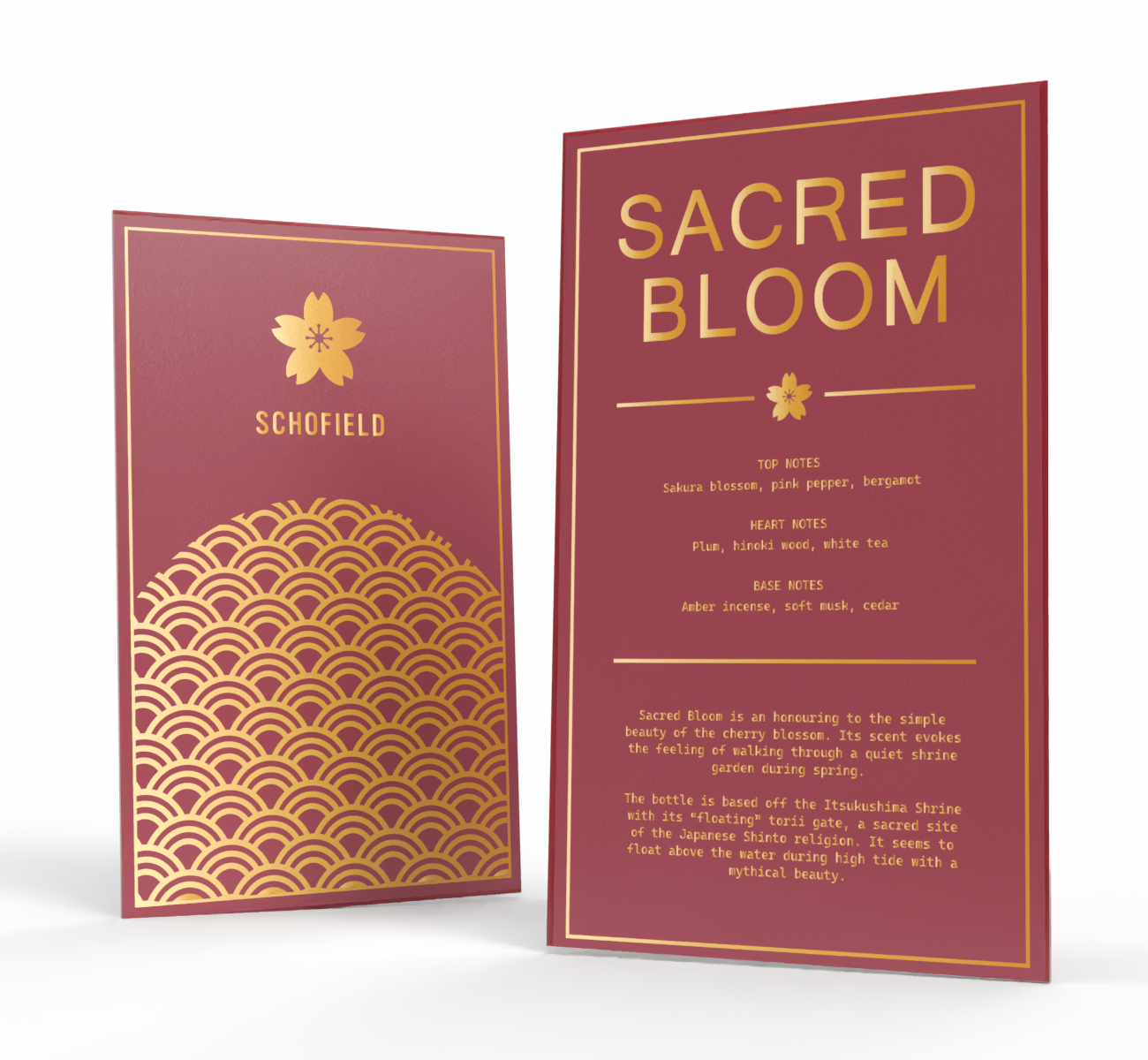 One full-size bottle (150ml) of your choice: Sacred Bloom or Cindered Bloom. Includes a set of premium cards with scent profile information, a traditional painting reflecting the fragrance mood, and a haiku. These cards are printed on thick 600gsm card with double thickness for a premium, heavyweight feel – made to keep, not to throw away.